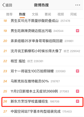 #新東方烹飪學(xué)校直播招生#上了熱搜,不一會兒功夫就爬升至第26位,給了的小伙伴們一個措手不及。