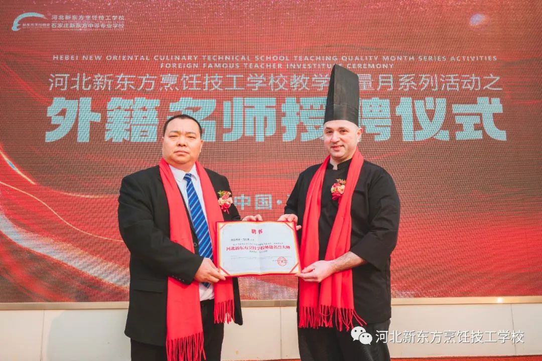 溫暖和煦的天氣,學(xué)校的校園學(xué)習(xí)生活越發(fā)熱鬧,在河北新東方烹飪技工學(xué)校前廣場(chǎng)舉行了熱情的歡迎儀式之后,河北新東方校現(xiàn)場(chǎng)頒發(fā)授聘Vittorio Marzullo為我校外籍名譽(yù)的授聘書!