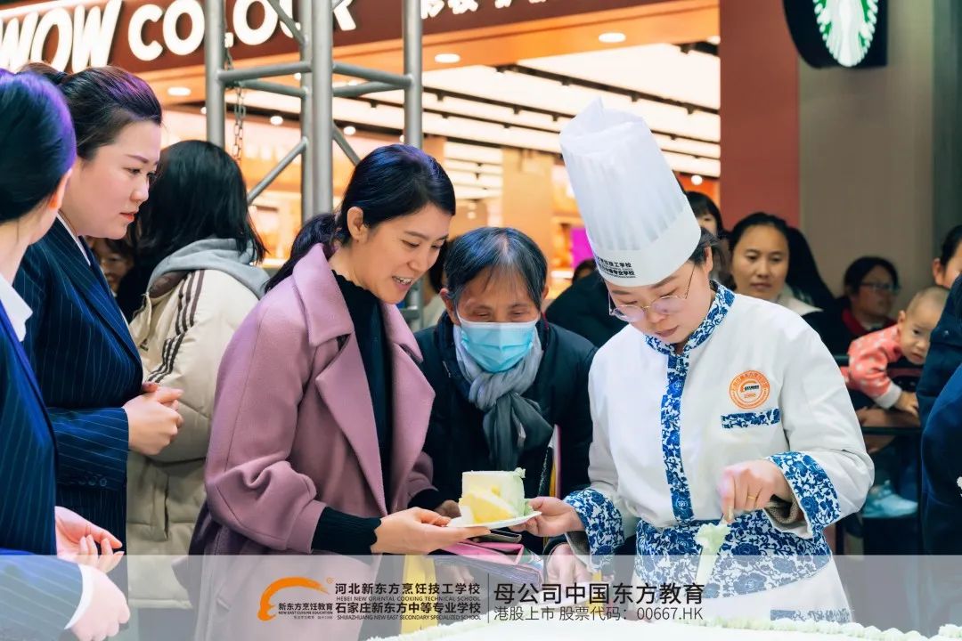 在活動現(xiàn)場,河北新東方烹飪技工學校的師生們充分發(fā)揮了自己的專業(yè)特長,精心制作了一款巨型西點蛋糕。這款蛋糕采用了精湛的烘焙技藝,將各種原料巧妙地融合在一起,呈現(xiàn)出誘人的色澤和口感。在蛋糕的制作過程中,師生們嚴格遵循食品安全和衛(wèi)生標準,確保了蛋糕的品質和口感。
